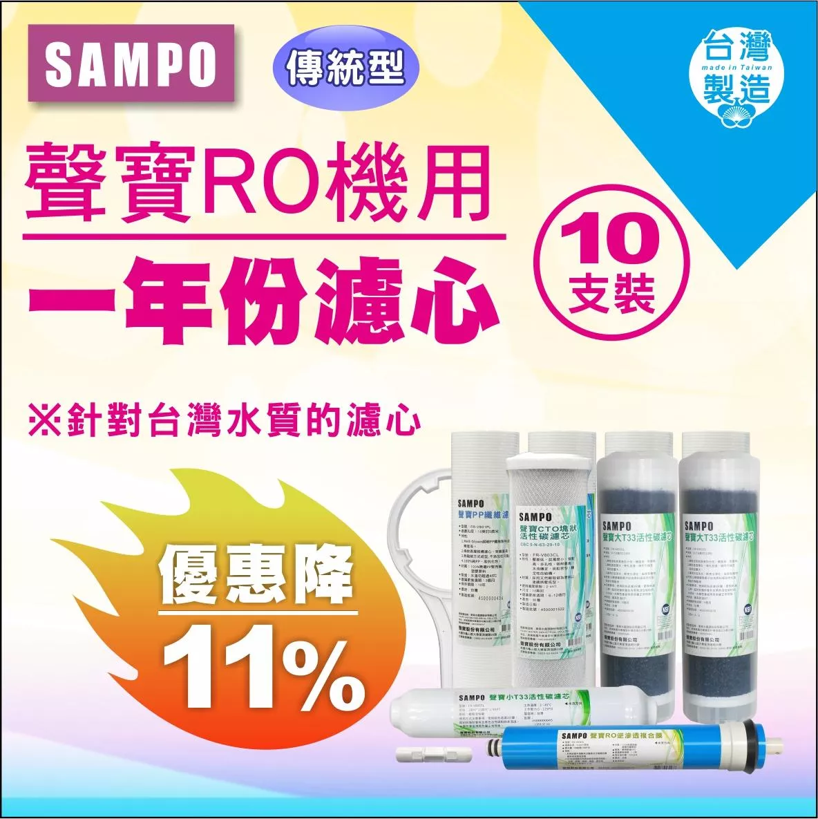 ▎適用有桶RO ▎聲寶《SAMPO》RO一年份濾心(含RO膜)傳統10支裝【水易購淨水 新竹+竹北店】