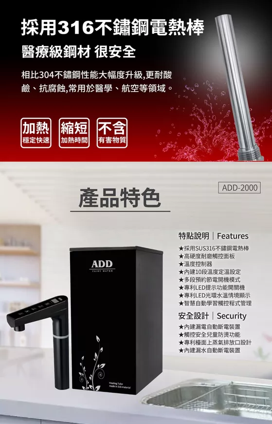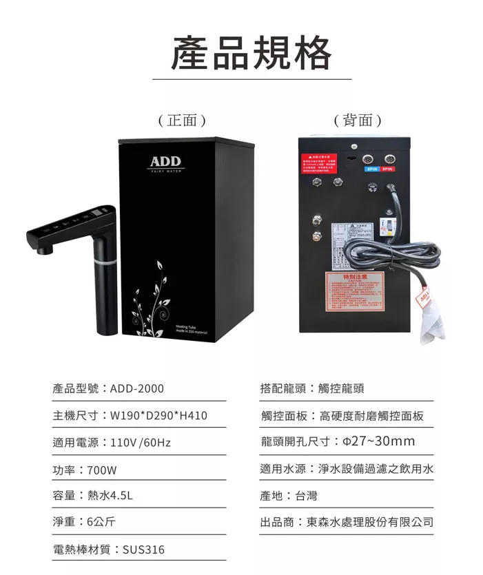 ADD-2000 冷熱觸控廚下加熱器飲水機(免運含安裝)【水易購淨水新竹+竹北店】