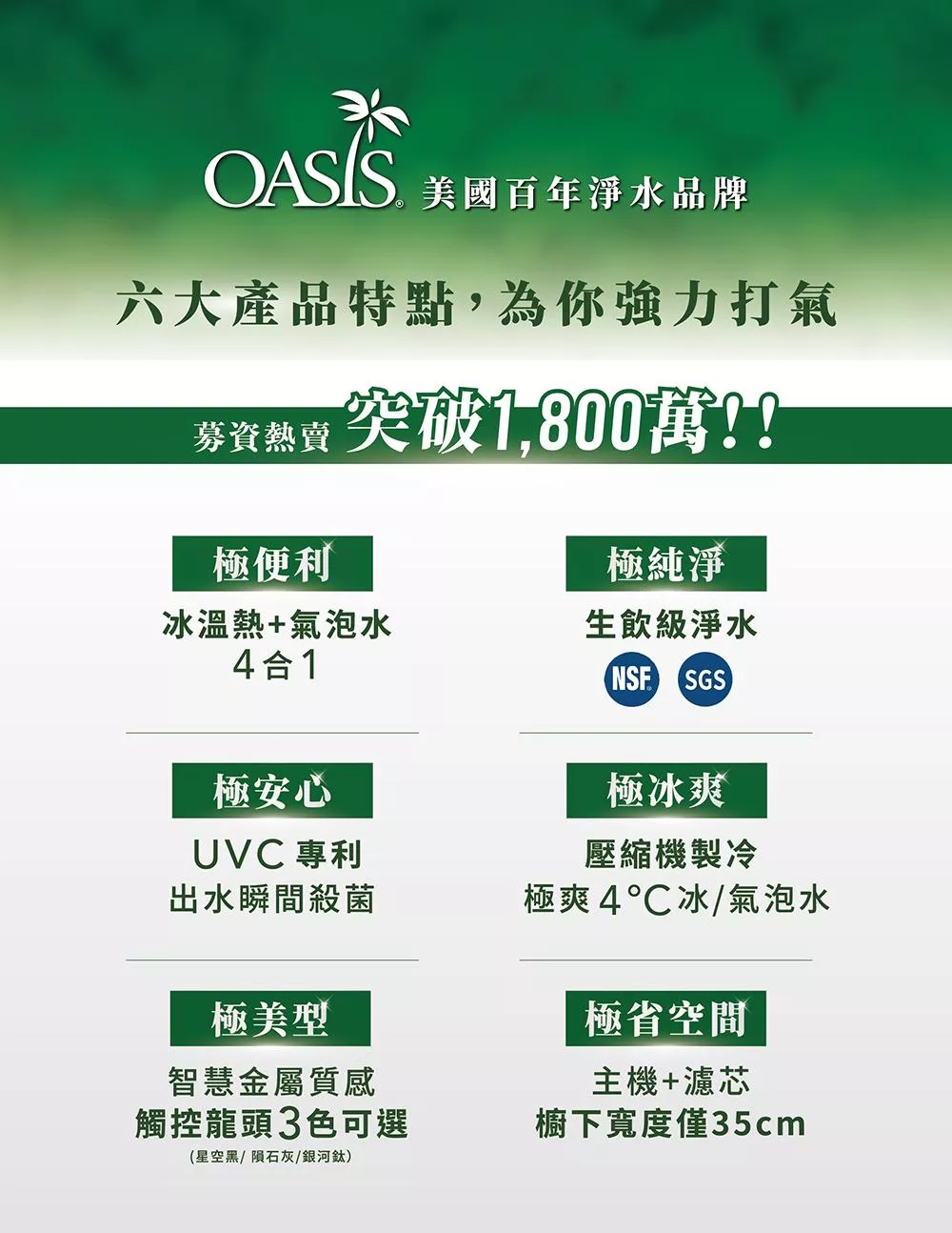 - Oasis美國百年淨水品牌-櫥下極奢氣泡三溫飲水機