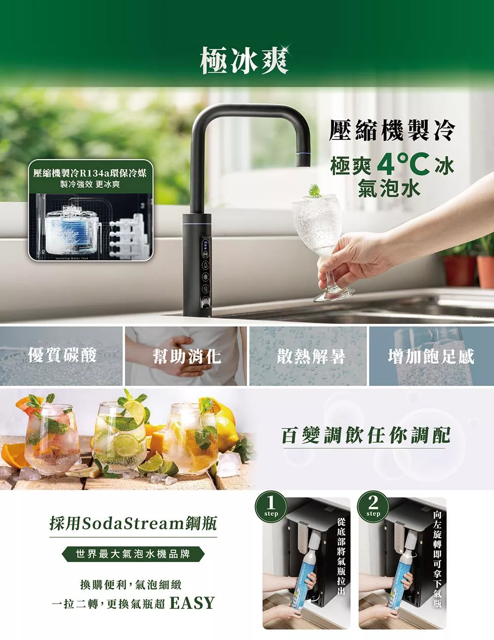 - 冰溫熱+氣泡 4合一→滿足全家飲水需求