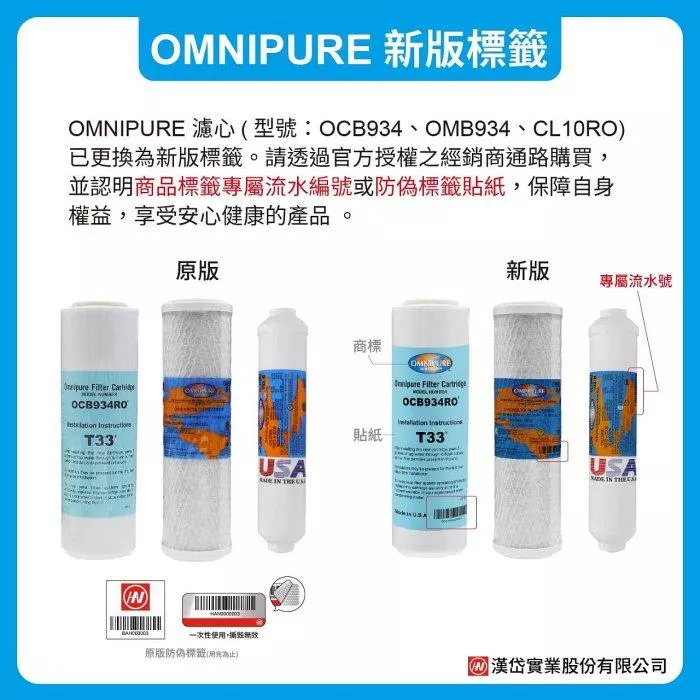 美國進口OMNIPURE 小T33後置活性炭濾心 1支(一年更換一次)