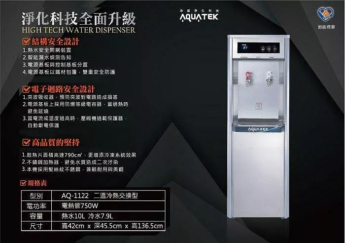 【水易購淨水新竹店+竹北店】沛宸AQ-1122 熱交換型-溫熱雙溫飲水機*免運+安裝*