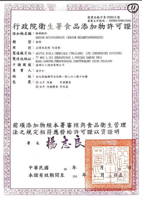 濾材內容:食品級複磷酸鹽(食品添加物)